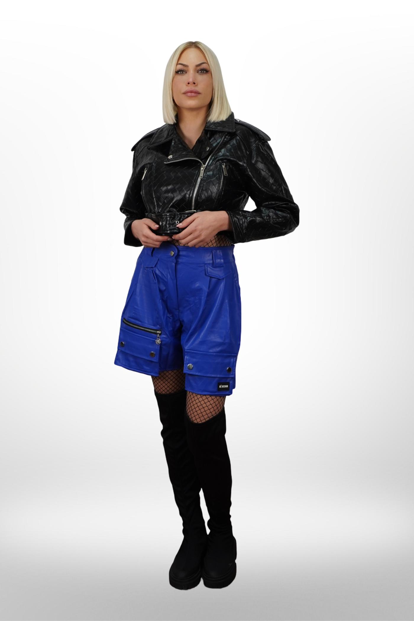 Puha, minőségi PU műbőrből készült, belül pamut réteggel kombinálva, így nemcsak látványos, hanem kényelmes is. A hátsó derékrésze gumírozott, ezért rugalmasan követi a mozgást – miközben megőrzi strukturált formáját.