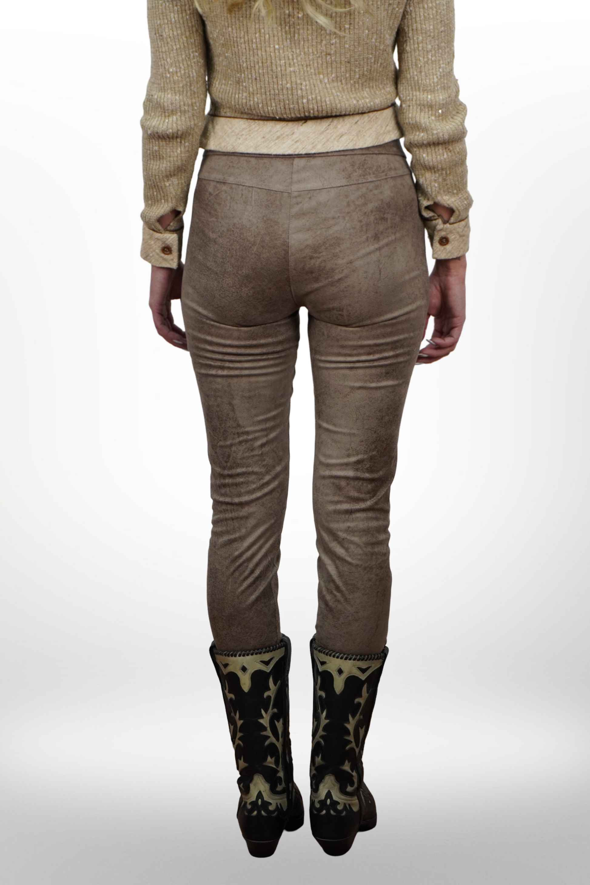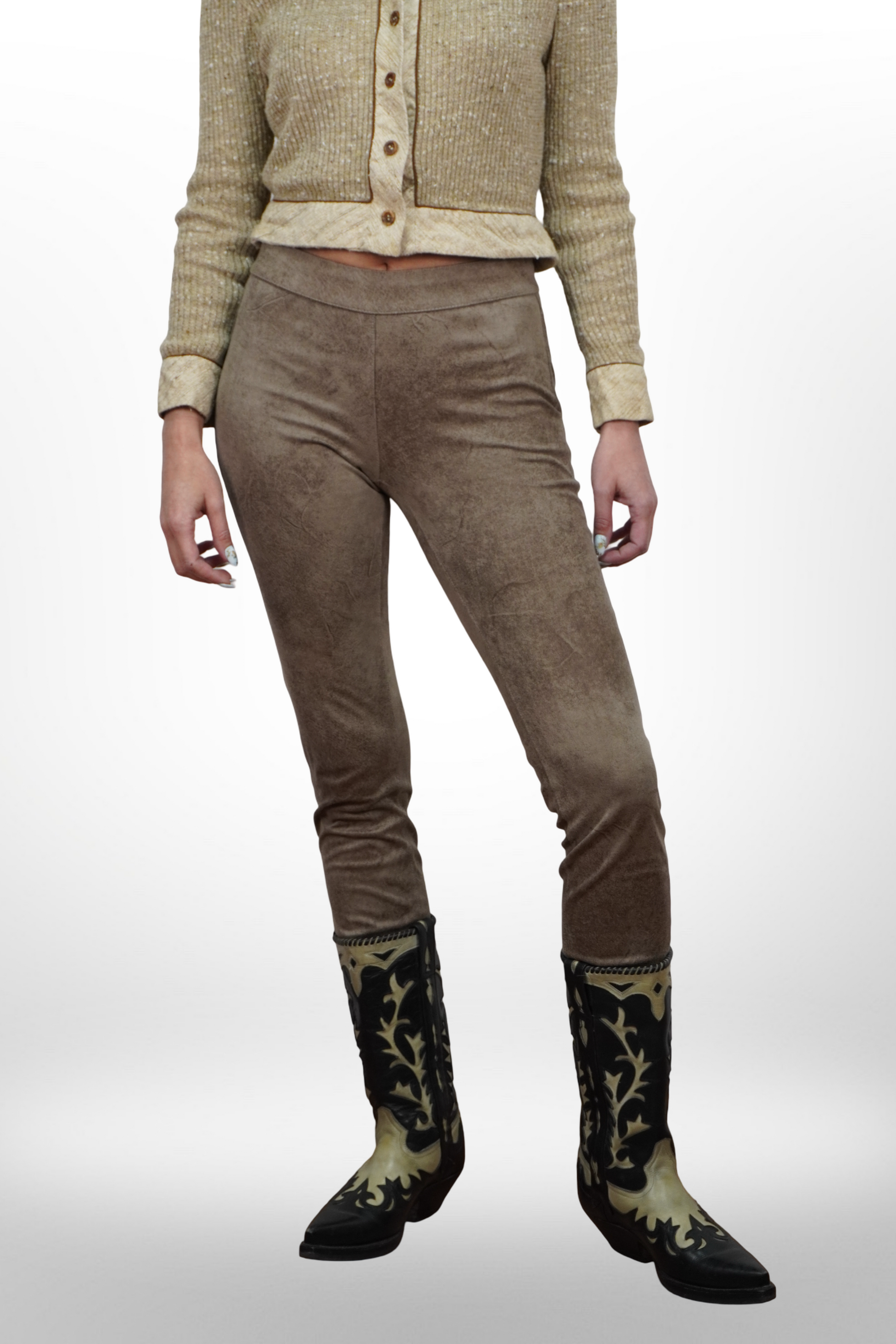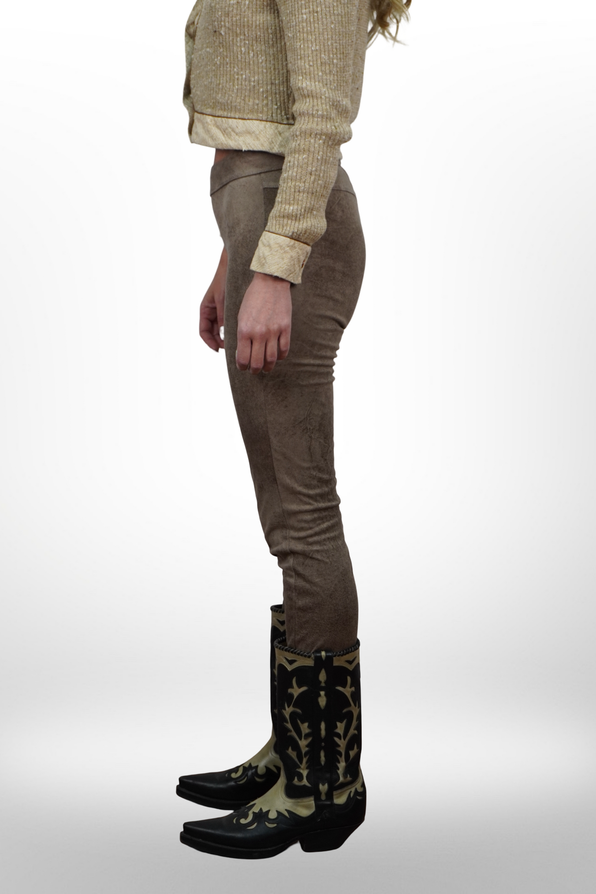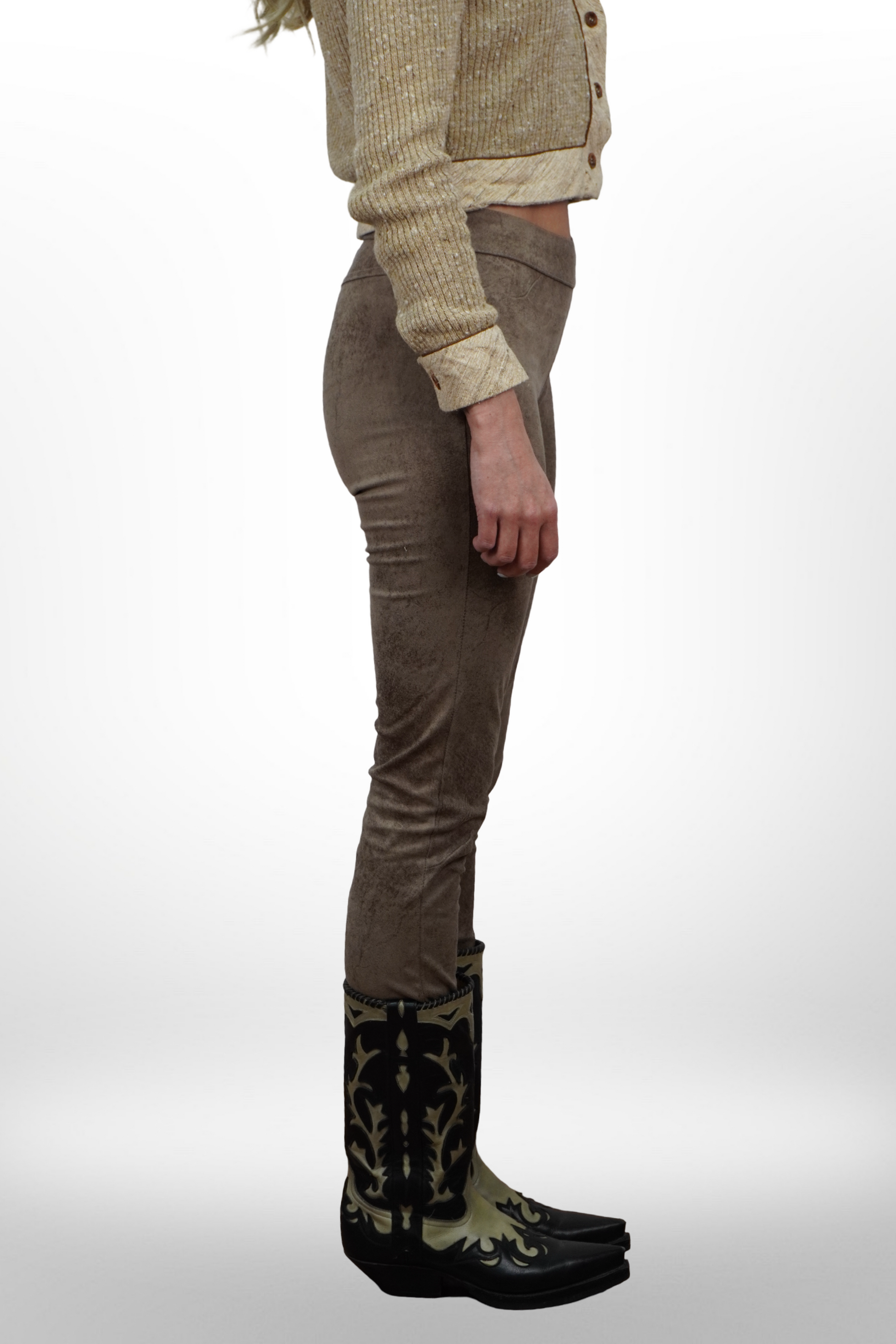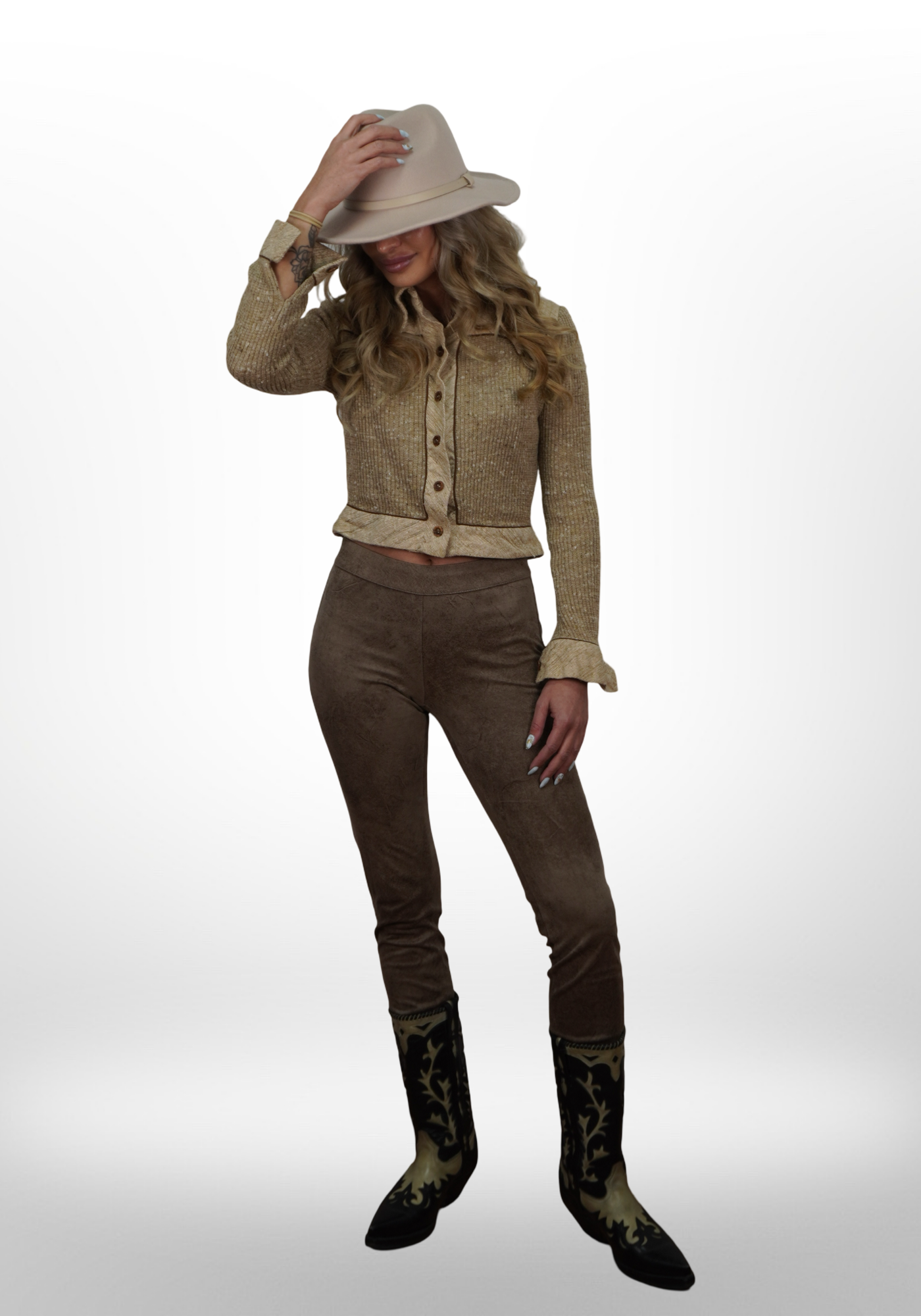 Ez a puha, szarvasbőr hatású nadrág mintha a sivatag porából született volna. Földszínei és lágy, rugalmas anyaga egyszerre kényelmes és stílusos. Tökéletes alapdarab őszre – western csizmával, hosszú kabáttal vagy akár egy pulcsival is működik.