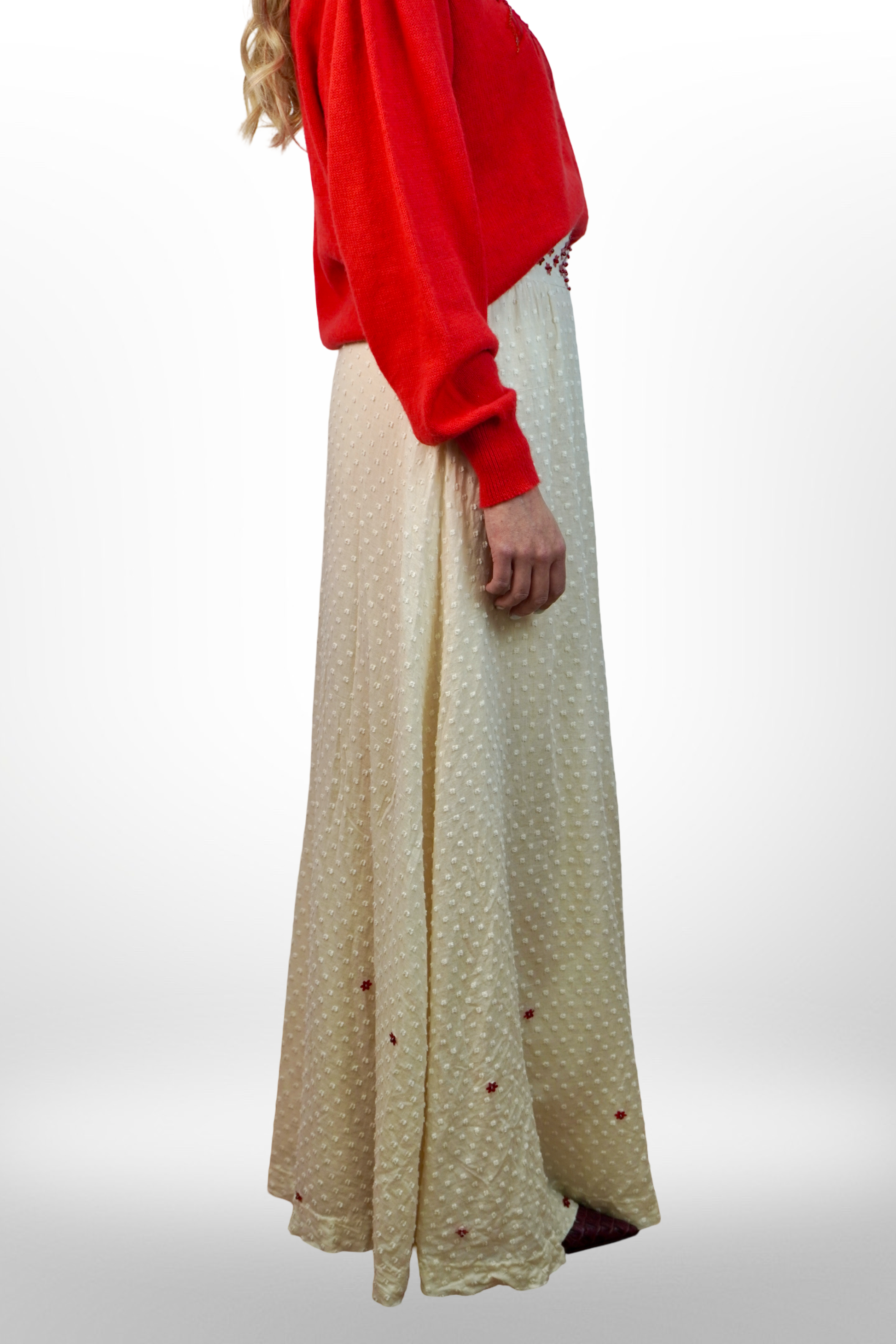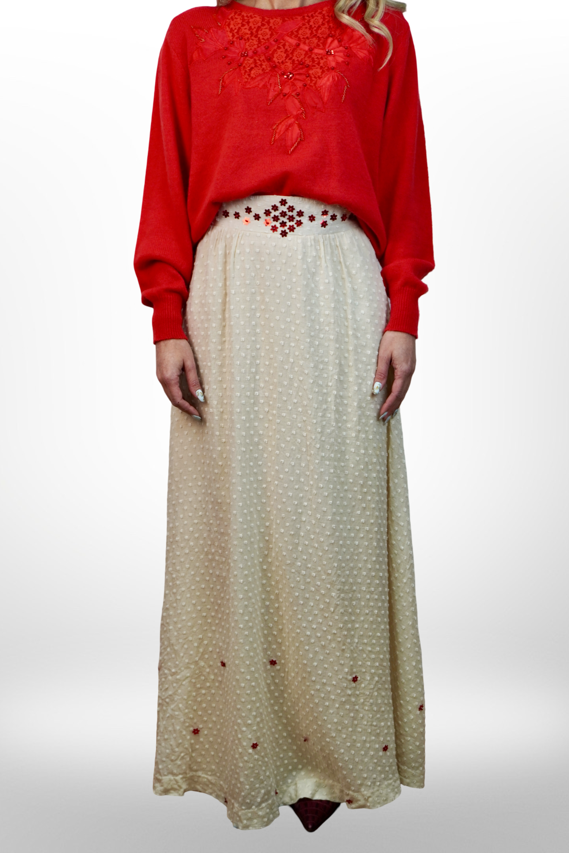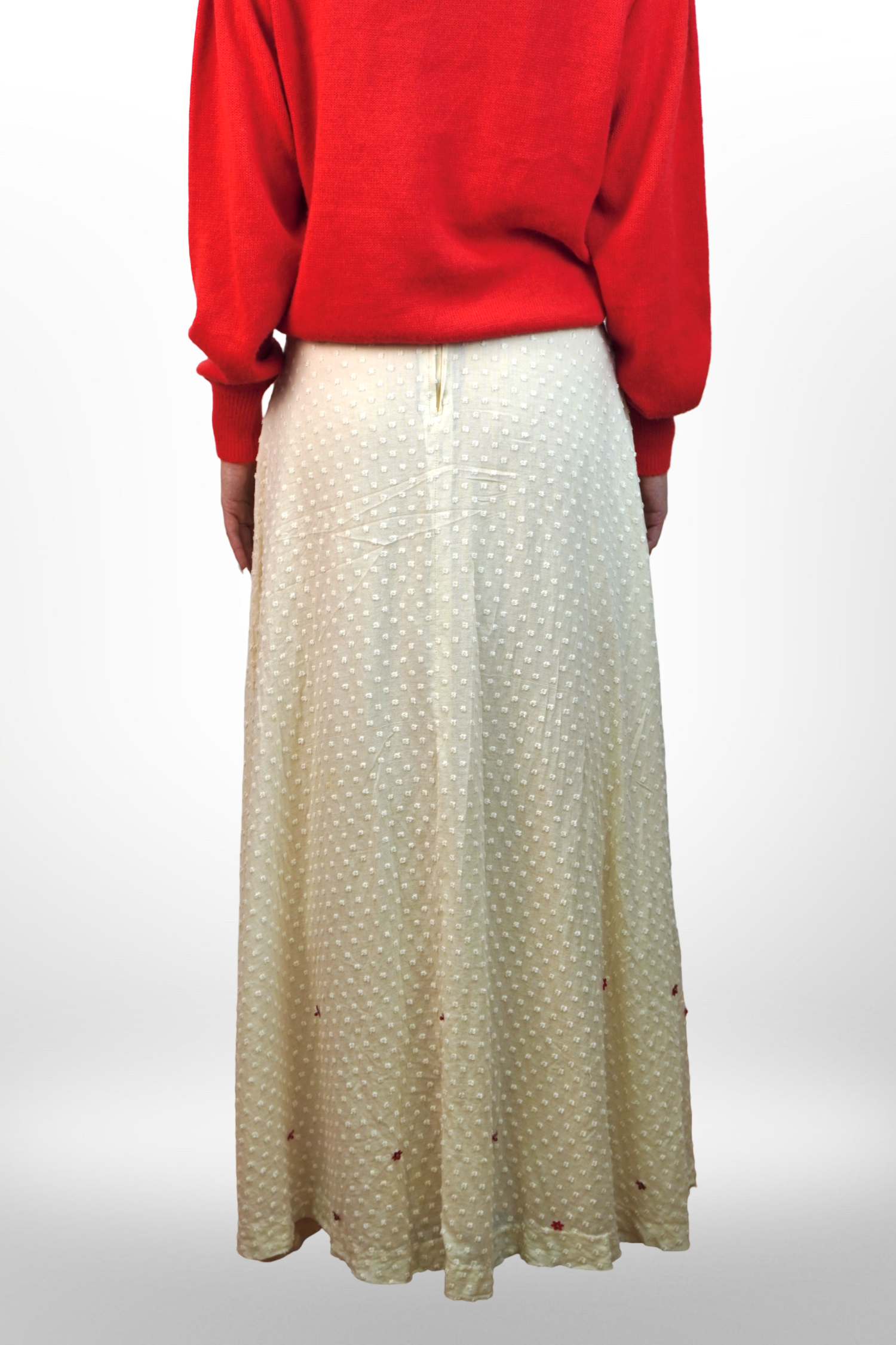 Ez a csontfehér vintage maxi szoknya nemcsak különleges textúrájával varázsol el – hanem azzal is, hogy már valaki más történetét is magában hordozza.