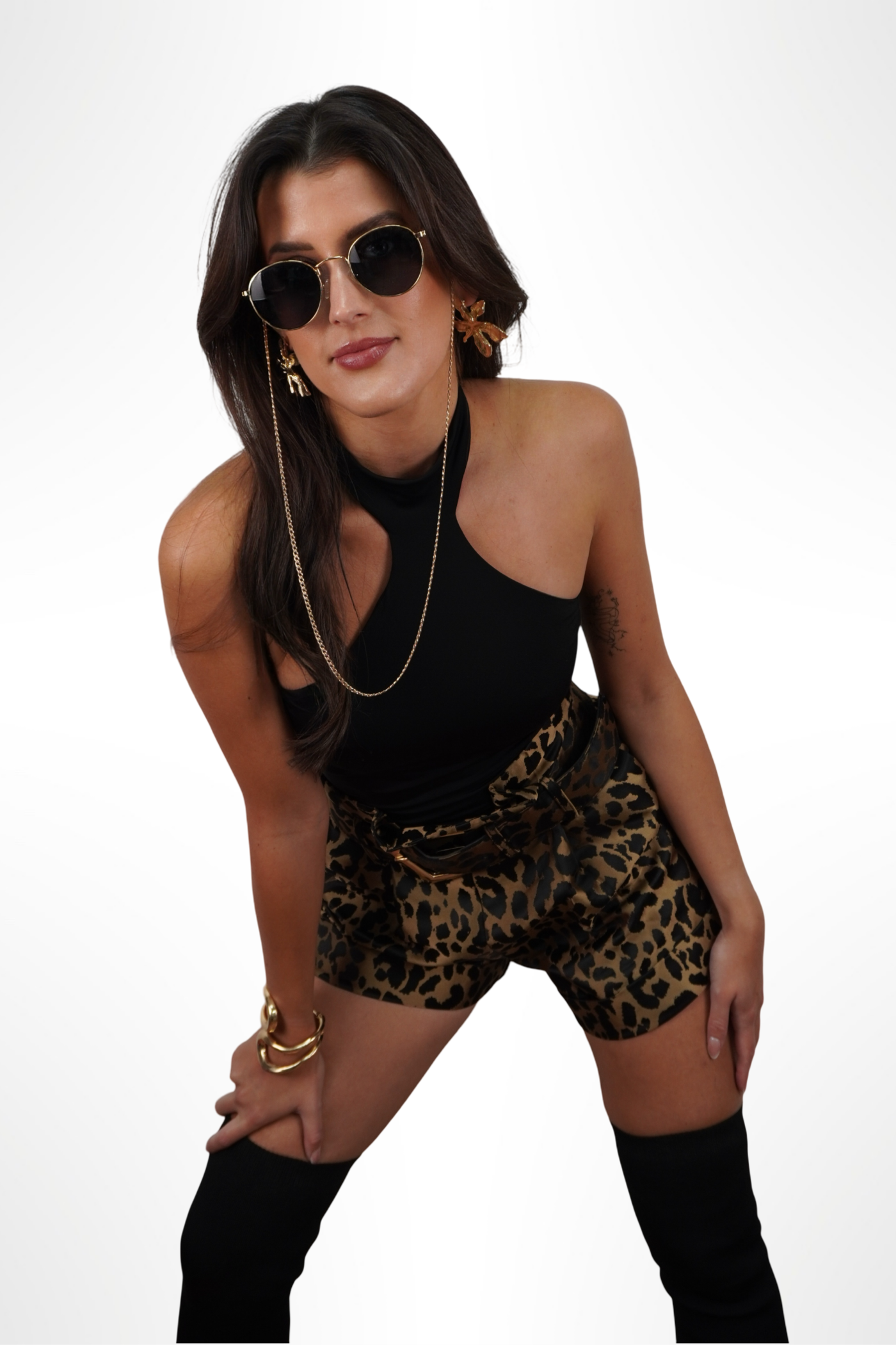 A MIDNIGHT JUNGLE nevet ez a vadító leopárdmintás rövidnadrág kapta, mert olyan, mintha egy éjféli dzsungelből lépett volna elő – sötéten csillanó anyagával, drámai mintázatával, és az arany csattal díszített extra övvel, ami még hangsúlyosabbá teszi az összhatást. Egyetlen egy van belőle, és csak rád vár.