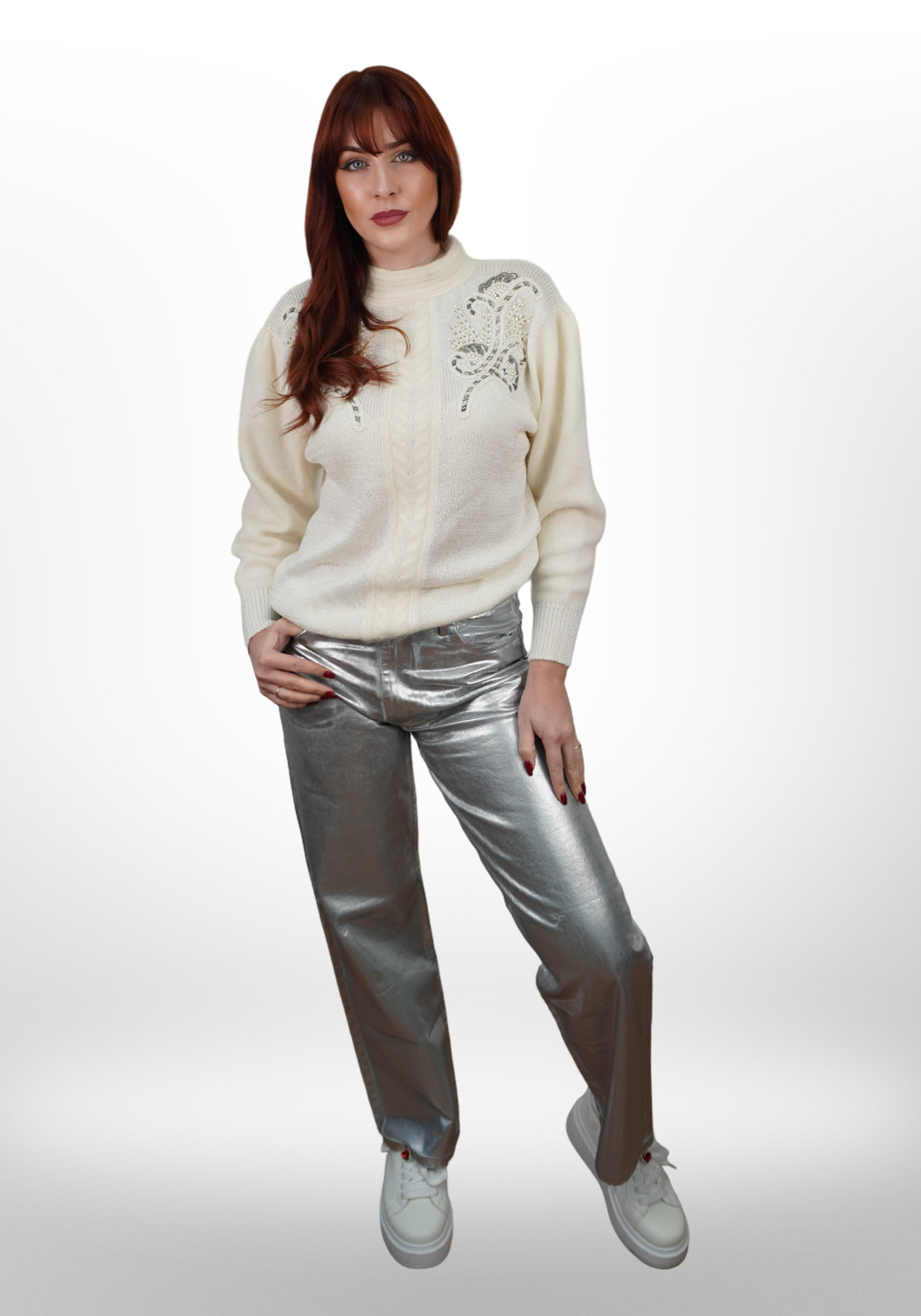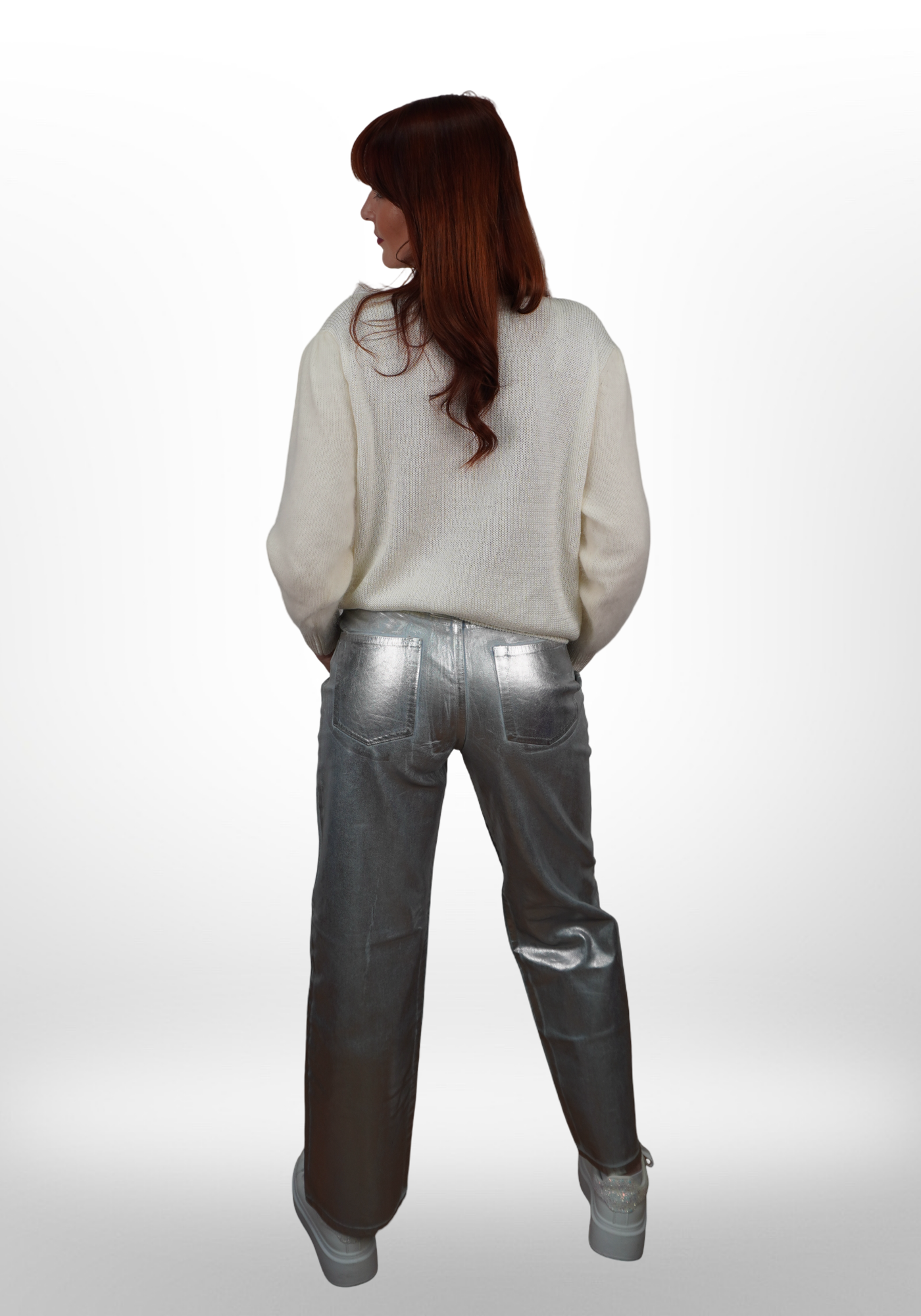 A SILVER HAVOC nadrág az a darab, amitől még a legegyszerűbb felsők is galaktikus hatású szettekké válnak. Próbáld fehér garbóval vagy crop toppal, de bátran párosíthatod színes blúzzal vagy oversized pulcsival is. Cipőben minden működik: sneakertől a tűsarkúig. Ez a nadrág mindig felrázza az outfited.